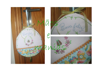 Pequeno bordado de fita e uma espiguilha onde aparecem uns pintaínhos minis :-)